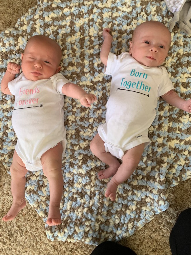 Our babies are 8 weeks old this week and are doing well. I have been hesitant to use the word colic, but they sure do cry a lot. I remind myself that it is the way they express themselves and work hard to comfort them. This week I’m back to work part time and my parents are staying with the babes. We are so thankful for this time they have with their grandparents and so happy that they are well loved and out of daycare for a bit longer. There are two grandparents and two grandchildren, so the ratios work out well. They can each hold an expressive child and also get their steps in by rocking and walking and bouncing them around in an attempt to satisfy their demands.