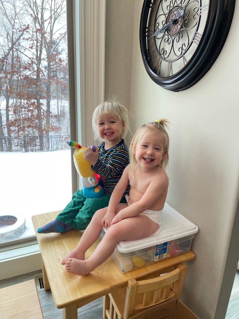 A lot has happened in the last several months and I’m pleased to share we now have two healthy two-year-olds. Shortly after their second birthday, my sweet Carter jumped off a chair and broke his foot, so we’re dealing with him in a cast. Prior to their second birthday, in December, we switched their daycare. We had been on a waiting list for around a year for another daycare in town – one with a better curriculum, less turnover, and a longer history. At the last minute, however, I considered pulling them out because they were experiencing such bouts of stranger danger. I’m so, so, so thankful that J convinced me to stick with the original decision because it has just been a wonderful change. The kids’ vocabulary is growing leaps and bounds and they’re becoming little people.